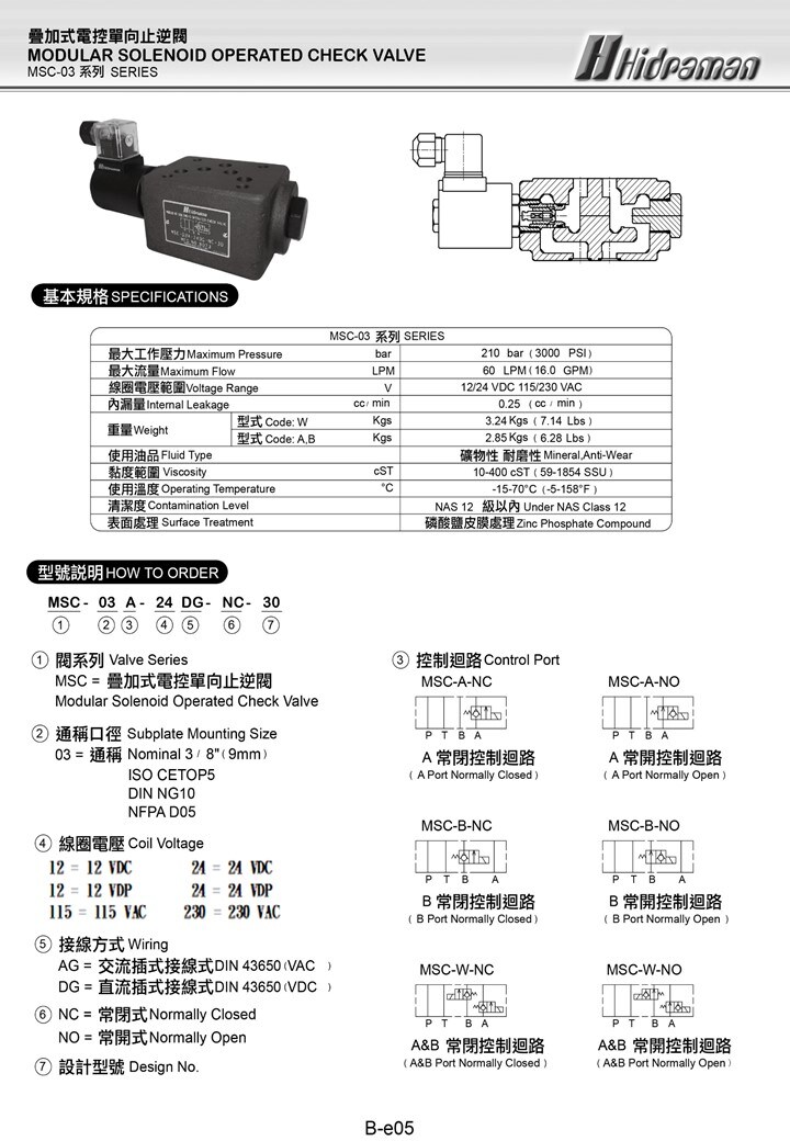 MSC-B-NO ( B Port Normally Closed) MSC-B-NC ( B Port Normally Open )