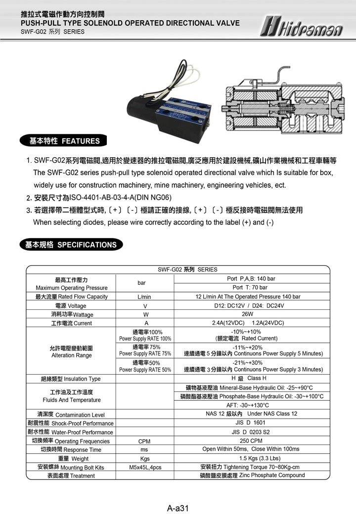 1.The SWF-G02 series push-pull type solenoid operated directional valve which Is suitable for box,
