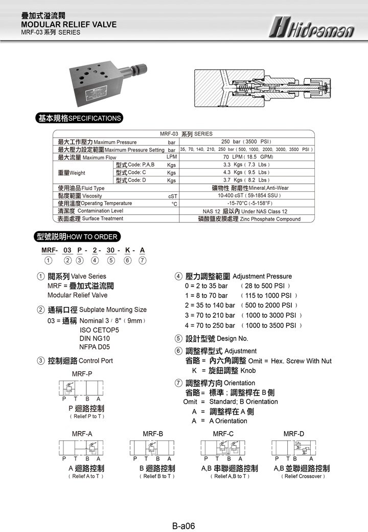 MRF-02 / MRF-03 Maximum Pressure: 250 BAR ( 3500 PSI )
