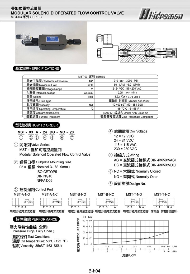MST=MODULAR SOLENOID OPERATED FLOW CONTROL VALVE