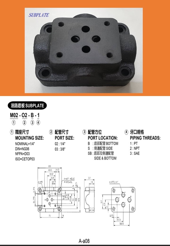 MOUNTING: NOMINAL=1/4" DIN=NG06 NFPA=D03 ISO=CETOP03